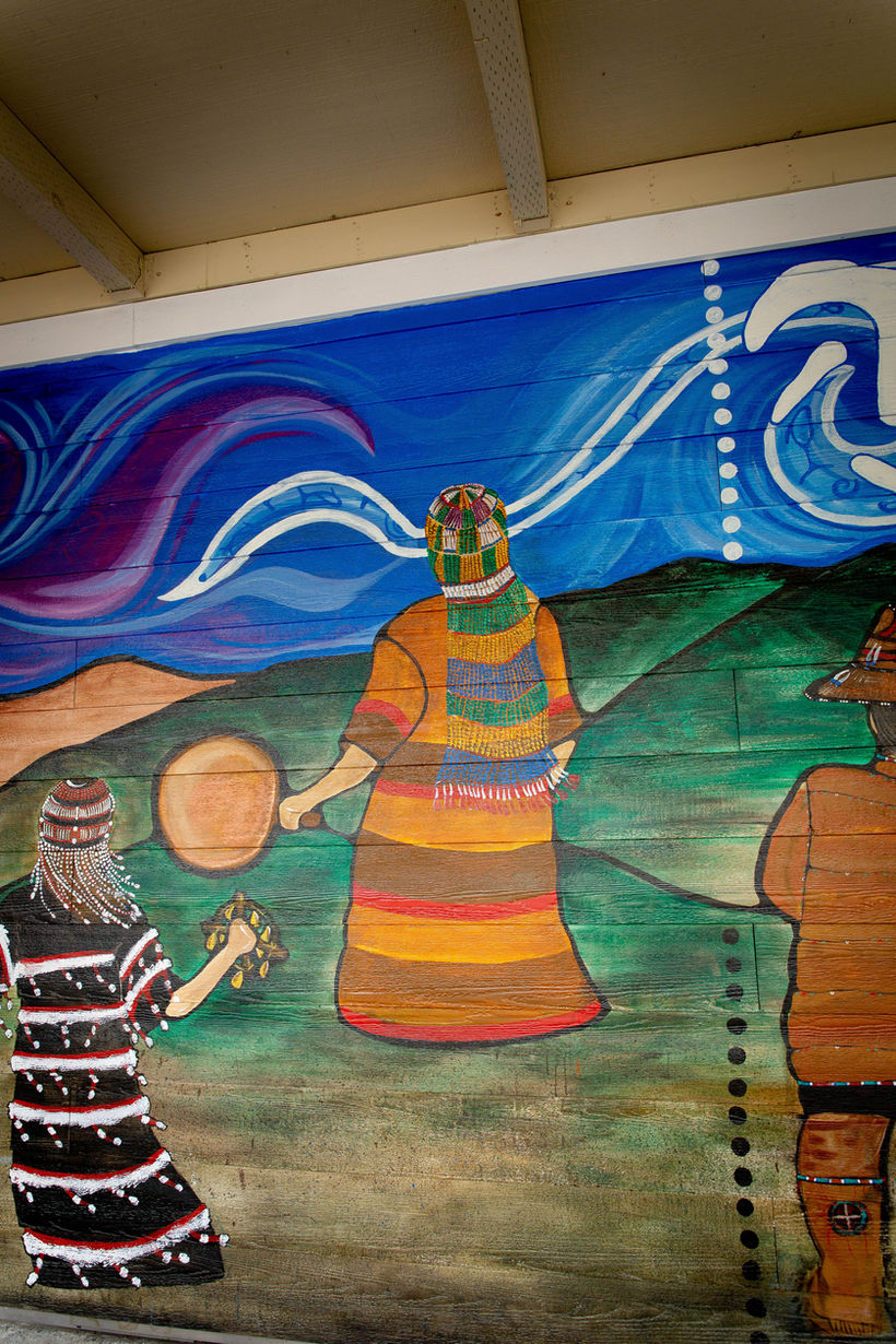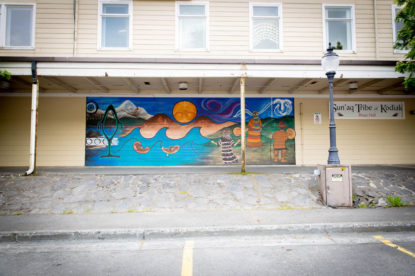 This large-scale mural has many of different elements celebrating Alutiiq culture, past and present. It has been an exciting learning experience. Aside from the journey above each part has its own special story to tell. Quyanaa to all who made this possible! Funding comes from the Henry Luce Indigenous knowledge fellowship, First Nation development institution. The people who supported me through this, Ezra Sholl, Sophie Frets, Gage Sholl for your assistance in painting. Mom, thank you so very much for spending countless mornings with me visiting while we painted. Anita Sholl, Chole Frets and Natalia Schneider, Quyanaa for your help with childcare, this would not be possible without you! <3 And of course, the Sun’aq Tribe of Kodiak for allowing me to occupy your space and letting me share.